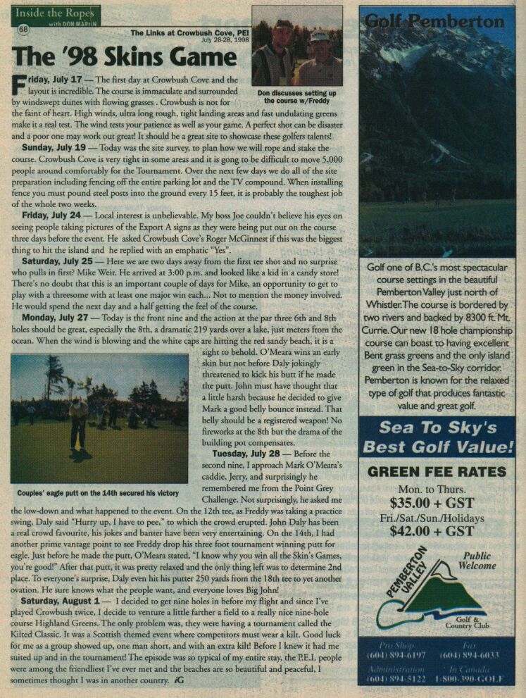 "The '98 Skins Game" - Inside Golf, September 1998, Volume 5 #4, p.68